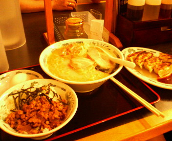 ☆とんこつラーメン & 餃子 & 温玉つきの肉どんぶり☆